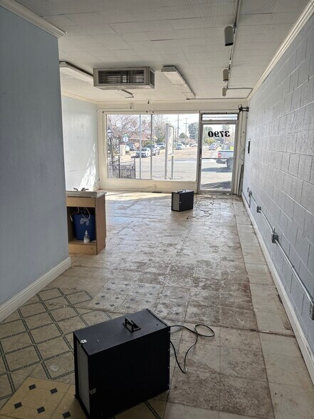 Large Floor to Ceiling facing Railroad Avenue, 3 outlets for water, front door and rear door, parking at rear, hot water heater, one small room and 1 restroom. Tenant can install floor, paint walls and replace light fixtures.