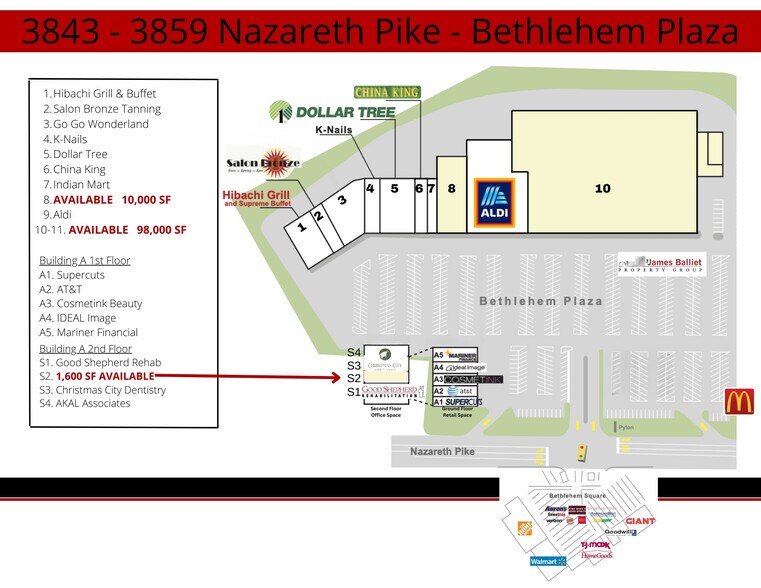 Bethlehem Plaza 3843 Nazareth Pike Espace disponible | 929–10 034 m² | Local commercial | Bethlehem, PA 18020