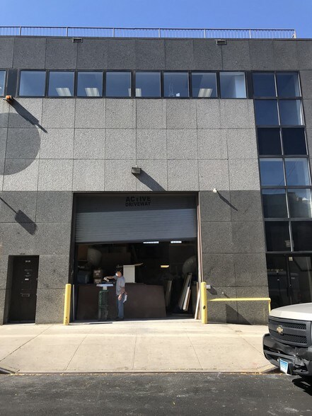 The ground floor features 3,450 SF of warehouse space with a soaring 20-foot ceiling height and a 14’ x 14’ drive-in door, ensuring efficient loading and storage capabilities. Upstairs, the 2,700 SF office space boasts a glass, granite, and marble lobby, ADA-compliant bathrooms, and an expansive outdoor terrace with sweeping views of Manhattan—perfect for executive offices or creative workspaces. Additional highlights include 600-amp power, a passenger elevator, and a private roof deck.