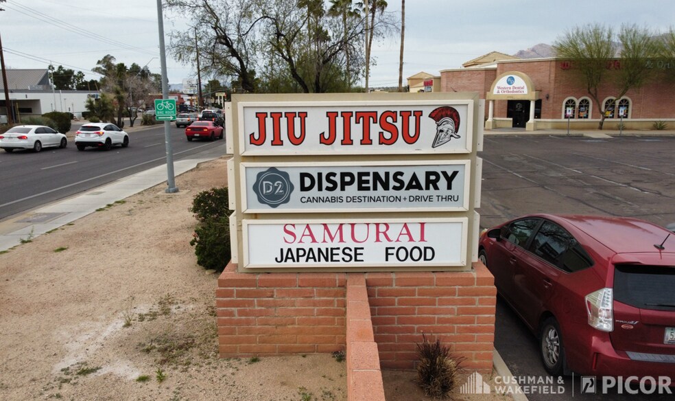 - En face de Super Target et juste au sud de Tucson Mall, le plus grand centre commercial fermé du sud de l'Arizona avec environ 1,2 million de pieds carrés.