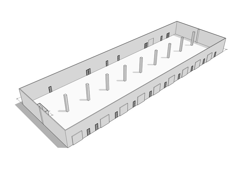 - Easily divisible. 249'x79' with a row of 11 columns evenly space in the middle.