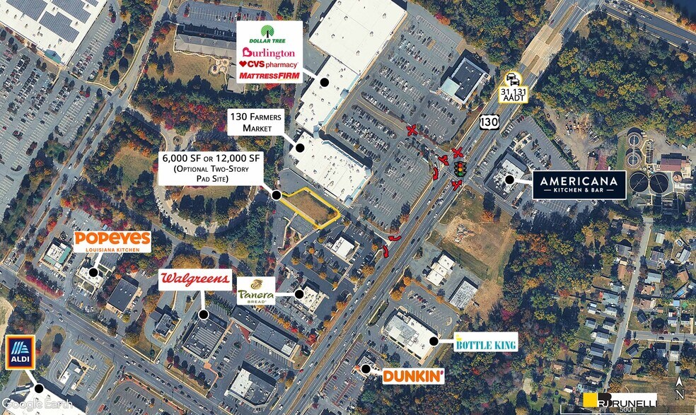 392 Route 130 in East Windsor, New Jersey presents a highly visible retail and office pad opportunity along one of Central New Jersey’s most heavily traveled commercial corridors. The site is strategically located on Route 130 South, less than one mile from the Route 133 bypass, which provides seamless connectivity to the New Jersey Turnpike at Exit 8. This location places the property within a dense, affluent trade area supported by strong household incomes and consistent daytime population activity. The property benefits from exceptional retail synergy, with direct cross-access and shared circulation into both East Windsor Town Center and East Windsor Village. These neighboring centers are anchored by a mix of national and regional tenants and collectively generate millions of annual visits, driving sustained consumer traffic throughout the day. The subject site captures this flow, with data indicating that a majority of visitors also shop adjacent centers during the same trip. The pad allows for a flexible building configuration, including the potential for a two-level retail or office structure. Proposed pylon signage along Route 130 further enhances visibility and brand presence. Highway Commercial zoning supports a wide range of permitted uses including retail, medical, professional offices, restaurants, financial institutions, and hospitality-oriented tenants, making the site well suited for both service-driven and experiential concepts. Surrounding development, strong traffic counts, and established national co-tenancy position 392 Route 130 as a compelling opportunity for tenants seeking long-term visibility and access within a proven suburban retail node