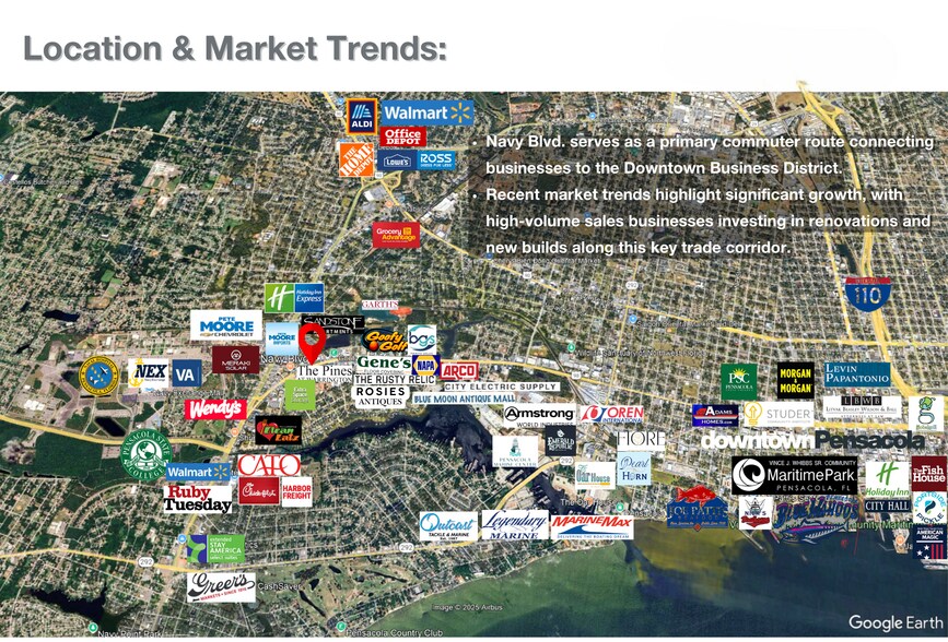 Positioned on a highly visible hard corner with a lighted intersection, this prime NNN land lease opportunity offers ±445 feet of frontage and excellent access along Navy Blvd. The site is ideally suited for a QSR, convenience store, or service provider in need of high-traffic visibility and room for lay-down yard or fleet operations. Land Lease Structure: NNN Term: 5 Years (longer terms negotiable) Build-to-Suit Option: Available for qualified tenants Traffic Count: High-volume Navy Blvd corridor Zoning: Commercial – supports a wide range of uses This is a rare opportunity to secure a well-located development site in a growing trade corridor near downtown Pensacola. Contact us today to discuss build-to-suit opportunities or land lease terms.
