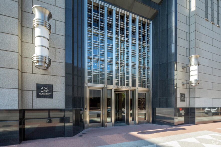Dominant les toits du quartier central des affaires de Louisville, le 400 West Market propose 34 étages de bureaux de classe A, des espaces commerciaux et des équipements pour les locataires, ainsi qu'un garage de stationnement attenant à six niveaux. Des finitions et des vues incomparables, combinées aux nouveaux tarifs de location et aux nouveaux équipements destinés aux locataires en 2017, font du 400 West Market l'une des plus prestigieuses tours de bureaux du centre-ville de Louisville. L'espace offre d'excellentes vues et une lumière naturelle abondante des quatre côtés. La tour peut fournir jusqu'à 80 000 RSF aux étages 7 à 11. C'est une excellente opportunité pour un siège régional, mais les étages peuvent être loués individuellement. La tour dispose de plusieurs suites entièrement meublées prêtes à être occupées immédiatement.