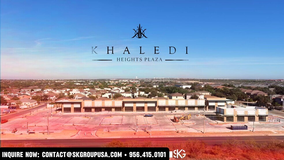 Khaledi Heights Plaza Phase II is the newest retail opportunity on the market, a 4-star shopping center currently under construction, projected to be completed early 2026. Khaledi Heights Plaza II will feature 16 newly constructed suites, ranging from 1,320 to 1,625 square feet, with one outparcel of 3,000 square feet. Find a space that feels right, with the option to occupy more than one suite, according to business needs. The site will also boast two drive-thru stations to conveniently accommodate customers and pylon signage to maximize visibility for any tenant. The site is conveniently located on the North Side of Laredo, near the intersection of Loop 20 and East Del Mar Boulevard, just a seven-minute drive from Laredo International Airport. Khaledi Heights Plaza II will boast easy access with four points of ingress and egress, 190 car parking spaces, plus exceptional visibility with nearly 33,288 vehicles passing by the site every day. Join a robust market, with an average household income of $123,067 within a 2-mile radius, contributing to $350,573,358 in annual consumer spending. Khaledi Heights Plaza Phase II delivers a prime location, accessibility, and exceptional visibility in Laredo's most dynamic retail market.