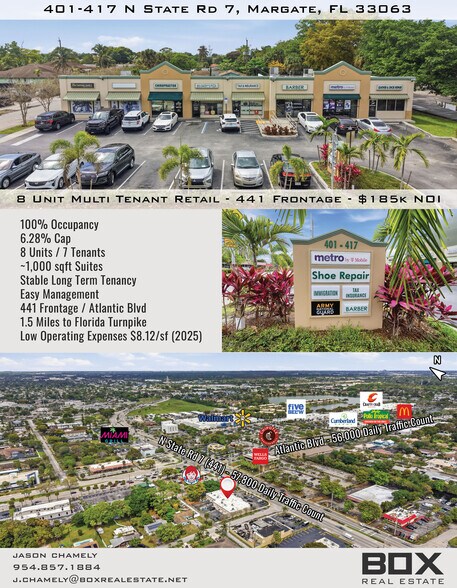 Stable long term tenancy with a solid mix of tenants including the Army National Guard, Big Daddy's Pizza, and Metro/TMobile, and the Margate Cobbler (a tenant for 30+ years).