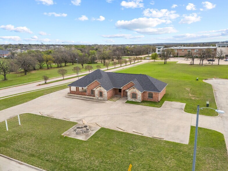 This recently updated, stone and brick office building is ideally situated one block off US 380 and two blocks from State Highway 114, offering excellent accessibility in a rapidly growing area experiencing significant residential and commercial development. The location makes it ideal to start or expand a medical or dental practice, med spa, childcare facility, salon, or other professional services. Seven rooms are equipped with plumbing (one includes a shower). The building features a large reception area, conference room, full kitchen, and separate laundry room. Upstairs includes an open room that would make an ideal break room, complete with a bathroom and attic access. Additional features include plenty of open parking plus eight covered parking spaces, two HVAC systems, two hot water heaters, ample storage, alarm system, and surround sound with speakers installed in every room. This flexible space offers a great opportunity to establish or grow your business in a high-growth corridor with strong future potential.