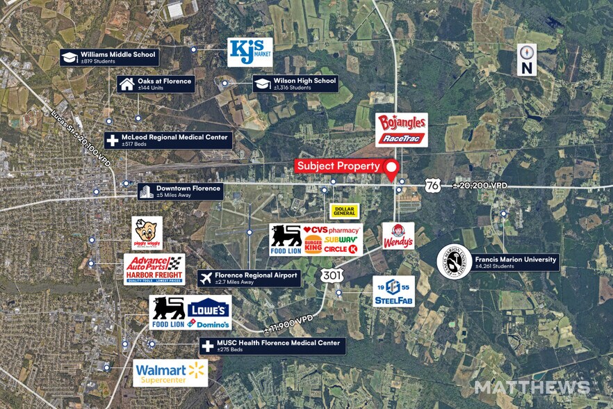 - Florence is a regional commercial hub anchored by major employers and strong demographics.