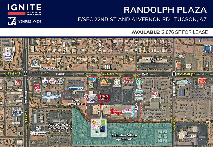 - Located at the intersection of 22nd St and Alvernon, which sees over 75,000 vehicles per day.