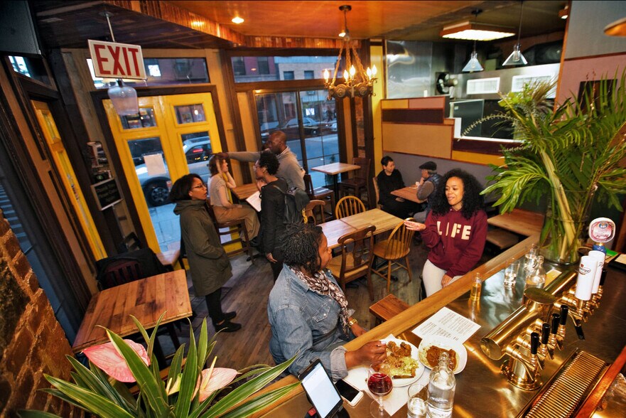 Corner restaurant space Fully renovated Turn key operation Flooded in light Historic district of Bed Stuy Built out basement with 9 ft ceilings