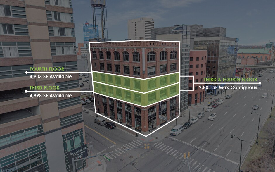 Welcome to 409 E Jefferson Avenue—a beautifully preserved Albert Kahn-designed office building located in the heart of Detroit’s Central Business District. With two full floors available, ranging from 4,898 to 9,801 SF max contiguous, this move-in-ready space offers an inspiring blend of classic character and modern functionality. Large windows flood the open floor plans with natural light, highlighting the original hardwood floors and exposed brick walls that create a warm, creative atmosphere perfect for a variety of uses. The building is shared with respected tenants, including DuMouchelles Art Gallery on the first and second floors, Chloe & Mateo PLLC on the fifth, and Perkins Law Group on the si, adding to the building’s prestige. Tenants can explore the opportunity for prominent building signage and enjoy convenient access to parking garages and surface lots immediately next door.