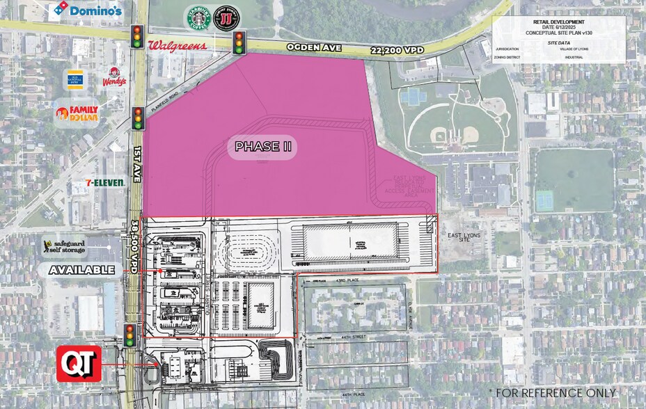 4400 1st Ave, Lyons, IL (Ogden & 1st – Quarry Redevelopment) Phase I fronting 1st Ave – Delivery 2025 Traffic: Over 60k VPD 1st Avenue: 38,500 VPD Ogden Avenue: 22,200 VPD Population: 1-Mile: 15,328 3-Mile: 127,471 Located in the heart of Lyons/McCook industrial corridor near Starbucks, Walgreens, Burger King, Wendy’s, Culver’s & more. Immediately north of I-55 Rare dense infill opportunity Brookfield Zoo approximately 1.5 miles north with over 2 million visitors per year
