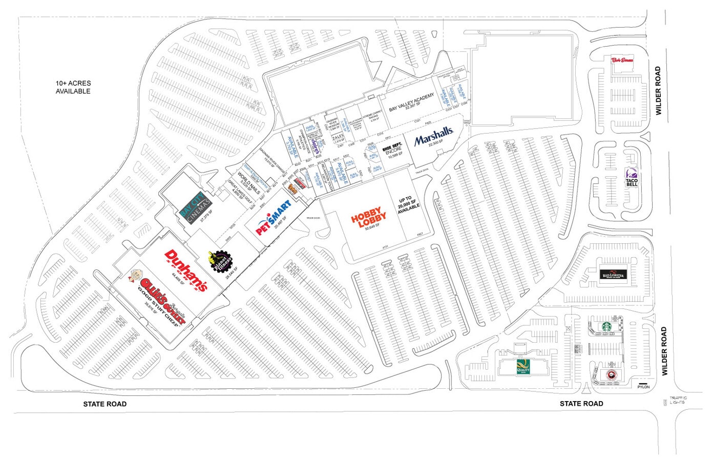 Bay City Town Center is conveniently located off of Interstate 75 in the trade area’s primary retail corridor of Wilder Road in Bay City, Michigan. This regional center has a strong mix of anchors and big box tenants including a newly opened Hobby Lobby Bay City 10 Theater, PetSmart, Marshalls, Dunham’s Sports, Ollie's Bargain Outlet, Shoe Dept, Planet Fitness, and Bath & Body Works.