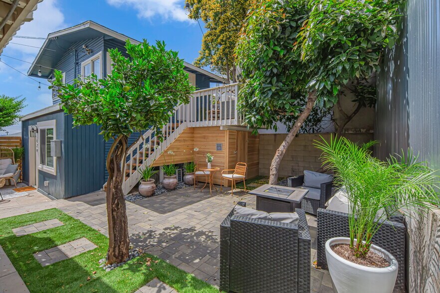 The rear structure features two studio units with private access and laundry hookups conveniently located beneath the rear deck —ideal for rental income, multigenerational living, or guest use. Property has been operated as a successful furnished rental and offers strong income potential. A turnkey opportunity in one of Downtown San Diego’s most walkable and desirable neighborhoods.
