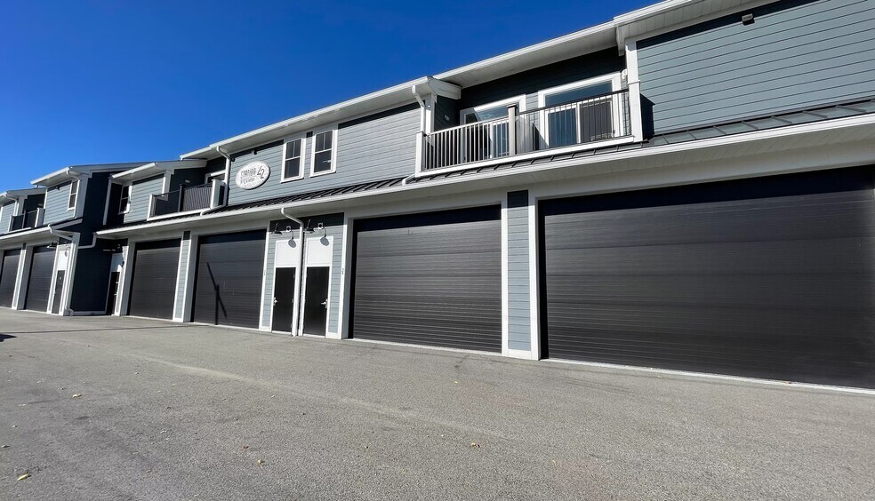 - Approximately 50% of the footprint is dedicated to garage space and 50% to second floor office space - A non-structural wall between units 5R and 6R can be removed to create a single large unit, totaling 3,710 SF - Built by a local, first class builder in 2017 and is easily customizable for various business uses Garage Features - 16 ft wide x 12 ft tall overhead doors - 13' 8'' ceiling height - Ability to park vehicles indoors with in floor oil separators and drainage - Half bathroom - Utility sink - Hose hookup - Gas Heating Office Features - Bathroom with shower - Kitchenette with fridge and sink - Balcony and meeting room - Washer/dryer hookup - Central heating and air conditioning