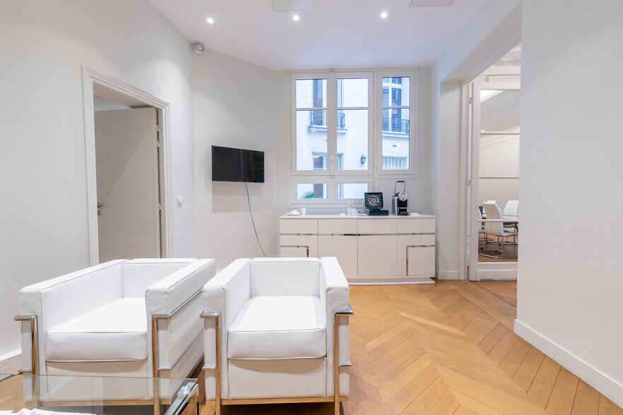 Situé au cœur du Quartier Central des Affaires de Paris, Pbo vous propose une surface de bureaux climatisés Une belle entrée, 6 bureaux, une salle de réunion, cuisine double sanitaire parquet / moulures gardienne
