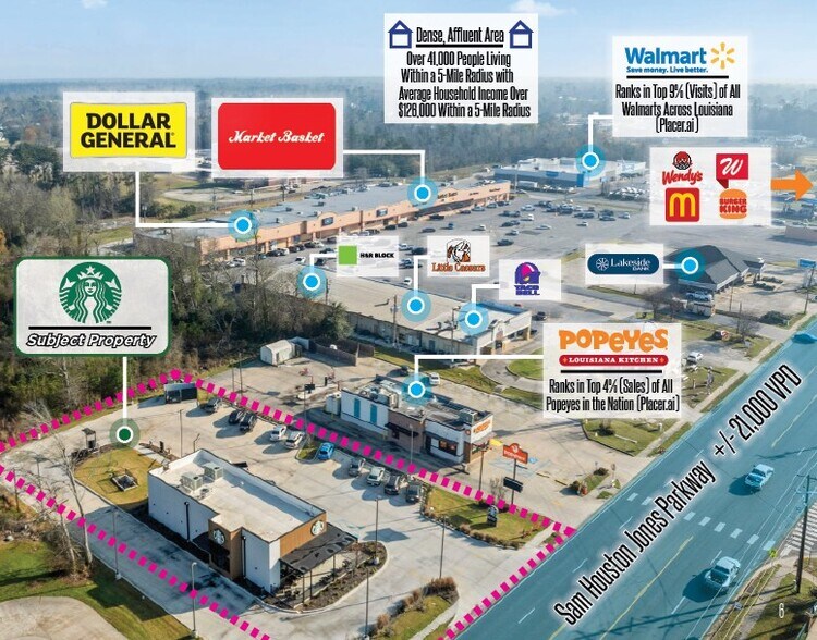 - Starbucks with Minimal Maintenance on a Heavily Trafficked Section of Sam Houston Jones Parkway (21,000 VPD)