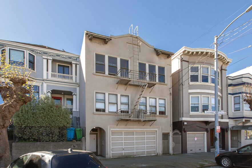 421 Cornwall Street is a wonderful four-unit apartment building located between 5th and 6th Avenue in the popular Inner Richmond District. The building features a sunny backyard, ample storage space, and a side-by-side two car garage which will be delivered vacant.