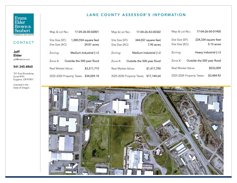 Map & Lot No.: 17-04-26-00-01400 Site Size (SF): 224,334 square feet Site Size (AC): 5.15 acres Zoning: Heavy Industrial | I-3 Zone X: Outside the 500 year flood Real Market Value: $533,009 2025-2026 Property Taxes: $3,484.92 Call for Pricing