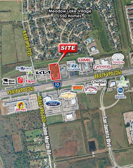 Very rare opportunity to purchase approximately 3 acres, net of detention, located between two existing car dealerships. The site is on I-10 East between Garth Road and John Martin Road in Baytown. This area is home to several car dealerships including Community KIA, Baytown Hyundai, Community Toyota, Big Star Buick GMC, Baytown Ford and Ron Craft Chevrolet.