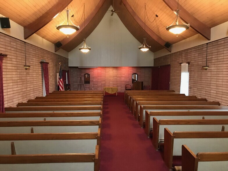 4000 square foot chapel with stained glass and cathedral ceilings ® 168 parishioner capacity ® Pews and lectern ® Air conditioned/heating ® Music room ® Gated 50 car parking capacity ® Fully operating kitchen with stove, oven, microwave and refrigerator. ® Office available upon request ® Shared space with 60-year-old funeral home