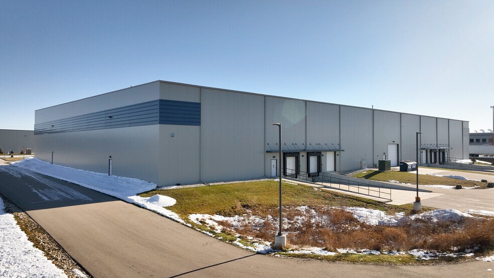 Class A industrial facility with four docks, two commercial delivery doors, one at-grade door, 30-foot ceilings, and easy I-90/39 access located within Janesville Logistics Hub’s east side.
