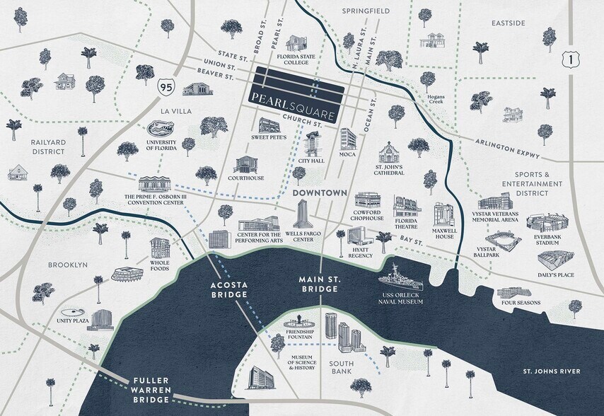 Pearl Square Jacksonville, FL 32202 Espace disponible | 99–10 315 m² | Local commercial