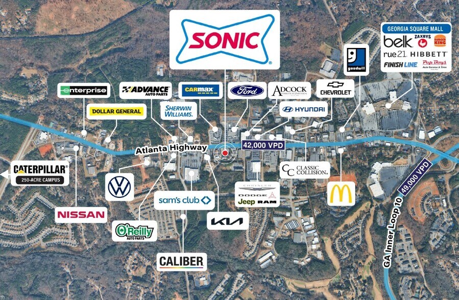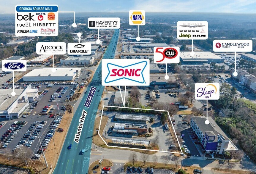 - Located along a highly trafficked corridor – Atlanta Highway (42,000 VPD)