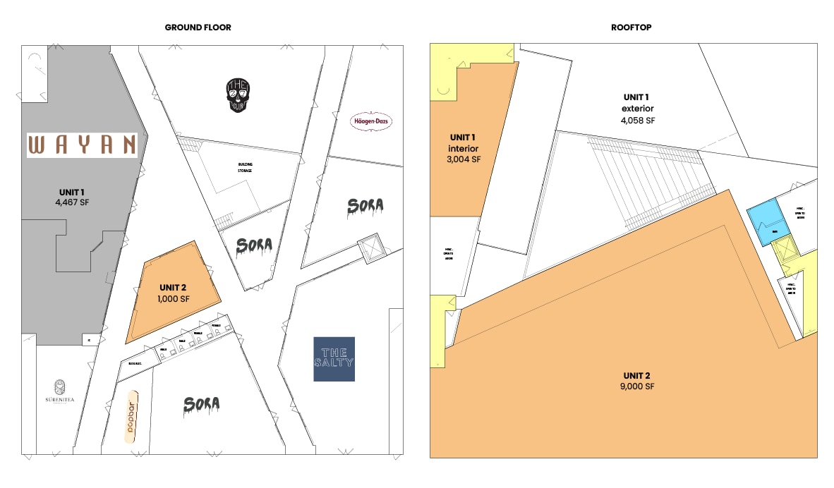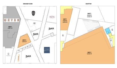 - Unit 2: 1,000 SF Ground Floor + 9,000 SF Rooftop