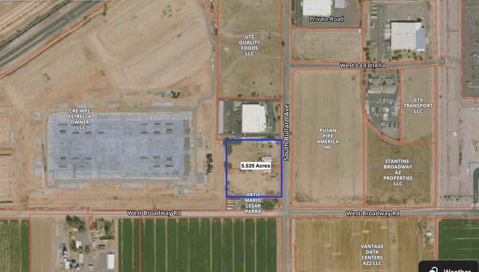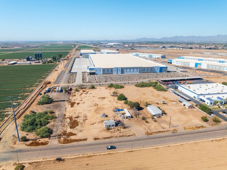 EMPLACEMENT DE CHOIX ! Le terrain d'angle de 1,36 acre vient d'être ajouté à cette offre. Ne manquez pas cette incroyable opportunité de posséder environ 6,89 acres dans le complexe industriel de Bullard et Broadway Roads à Goodyear. Cet emplacement privilégié est entouré de centres de données et d'entrepôts industriels et connaît une croissance explosive. Située juste au sud de l'aéroport de Goodyear, de la voie ferrée et de la MC 85, cette propriété offre un énorme potentiel d'investissement. Profitez de cette occasion rare de devenir propriétaire d'un terrain dans une zone en plein essor offrant des possibilités infinies de développement et de croissance. Cette offre comprend 3 propriétés. 2 parcelles sont raccordées à l'eau de la ville (le coin ne l'est pas) et des égouts sont disponibles sur le site. 2 vendeurs différents. Veuillez contacter l'agent d'inscription pour plus de détails sur la présentation d'une offre. L'agent inscripteur est lié au vendeur de 2 colis.