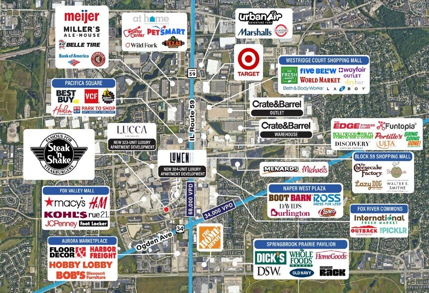 - Outparcel to Fox Valley Mall, a 1,000,000 SF regional shopping center with over 120 retail tenants
