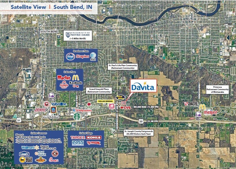 Forged Real Estate is pleased to exclusively offer the fee simple interest in a single-tenant property leased to DaVita Kidney Care (the “Property”), located in South Bend, Indiana, an established regional hub situated along the St. Joseph River and serving as the county seat of St. Joseph County. The tenant operates under a double-net (NN) lease with scheduled 2% annual rent increases beginning in 2032, offering built-in income growth. The lease is guaranteed by DaVita Healthcare Partners, Inc. (NYSE: DVA), providing investors with the security of a corporate-backed obligation. Rated BB by Standard & Poor’s, DaVita is a nationally recognized healthcare provider and has earned recognition as one of Fortune’s World’s Most Admired Companies for 15 consecutive years. Demonstrating strong financial performance, the company generated $506 million in operating income in Q3 2025. Further solidifying the investment’s stability, the tenant proactively executed a 7-year lease extension well ahead of expiration, resulting in more than 11 years of remaining term, a clear indicator of long-term confidence in the location and continued operational commitment. This combination of corporate credit, extended lease duration, and steady rent growth positions the offering as a compelling opportunity for investors seeking durable, predictable cash flow.