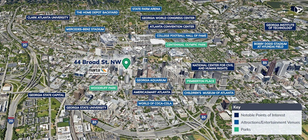 - Prime location in the Fairlie-Poplar district, near Woodruff Park, MARTA & Georgia State University