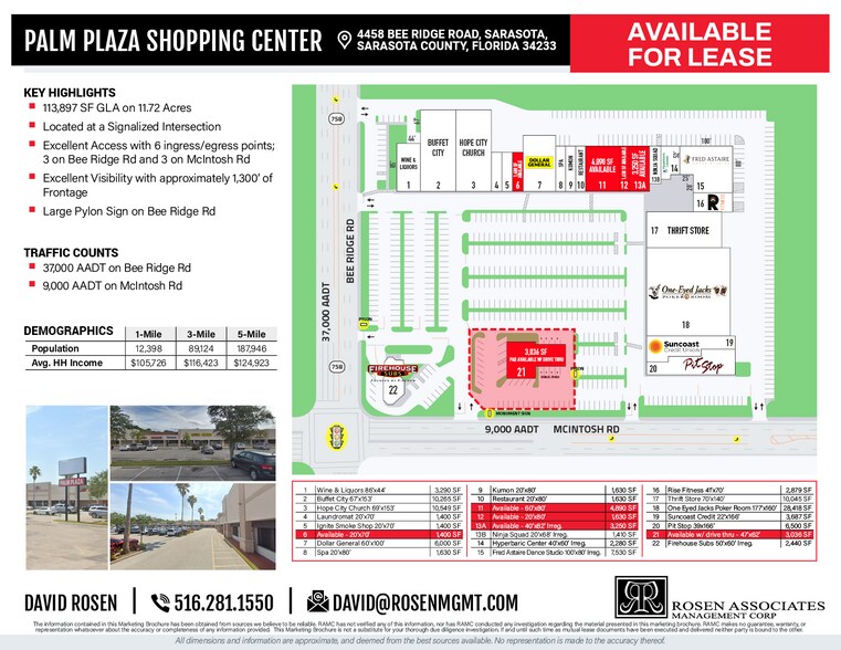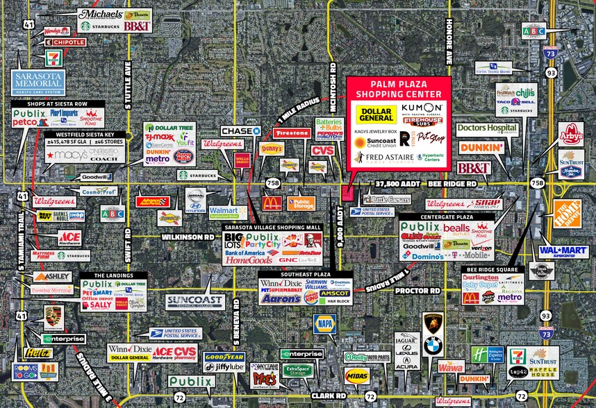 - Situé à l'intersection signalée entre Bee Ridge Road et McIntosh Road, Sarasota, Floride ; le trafic combiné compte plus de 47 000 AADT