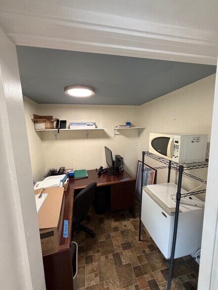 Corner Space with signage and parking and windows and light and ten built out offices and secure storage and a private outdoor area in the back and more!!