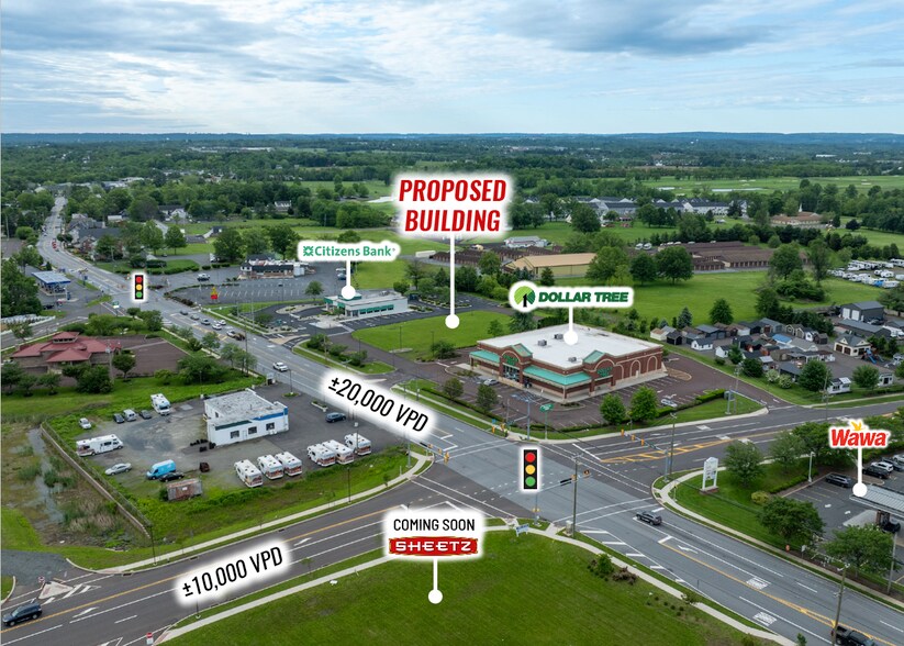 This pad site is prominently located at the intersection of Ridge Pike and Lewis Road in Limerick, Pennsylvania, offering high visibility and strong consumer traffic. The site is nestled between established anchors such as Citizens Bank and Dollar Tree, and adjacent to Wawa, Theraplay, and Rascals Fitness, all contributing to consistent foot traffic throughout the day.