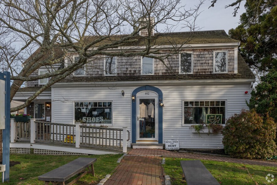 Prime retail space available for lease at 442 Main St, Chatham, MA 02633, located in a high-traffic area ideal for attracting customers. This 1,380 SF unit features large bay windows that provide excellent natural light and display opportunities, perfect for retail or boutique businesses. Additional basement storage offers flexibility for inventory or equipment needs.
