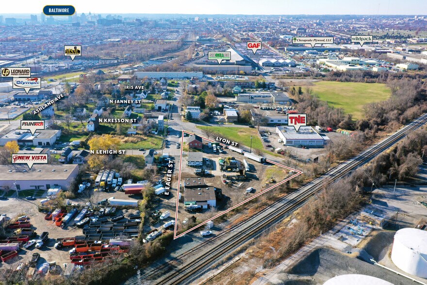 The property at 4420 E. Eager Street, Baltimore, MD 21205, is a fully leased industrial site available for sale. It is leased to Ace Environmental through October 31, 2028.