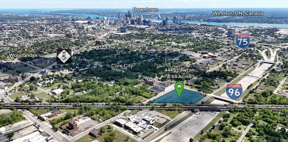 Terrain vacant de 4,68 acres. Toutes les offres seront prises en compte ! Angle des rues Buchanna et Lawton 4,68 acres de terrain industriel situé au 4445 Lawton St., Detroit, Michigan, 48208. Situé à côté de l'Interstate 96, avec 112 483 véhicules par jour. À 800 mètres de l'Interstate 94, avec 157 000 véhicules par jour. Près de l'Interstate 75, avec 83 991 véhicules par jour. Près de la M-10, avec 82 217 véhicules par jour. Borde une ligne de chemin de fer active, pour l'accès ferroviaire disponible à la vente ou au BTS. À 7,6 km de l'aéroport de Detroit City. À 20 miles de l'aéroport métropolitain de Détroit (DTW). À 6 km du centre-ville de Détroit. À 6 km du tunnel Detroit-Windsor, à proximité du Canada. À 5 km du pont Ambassador.