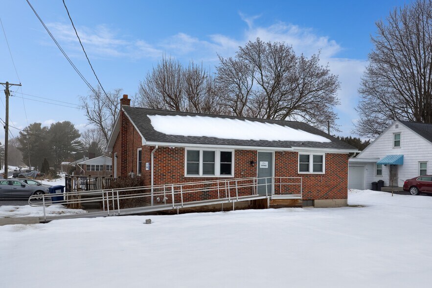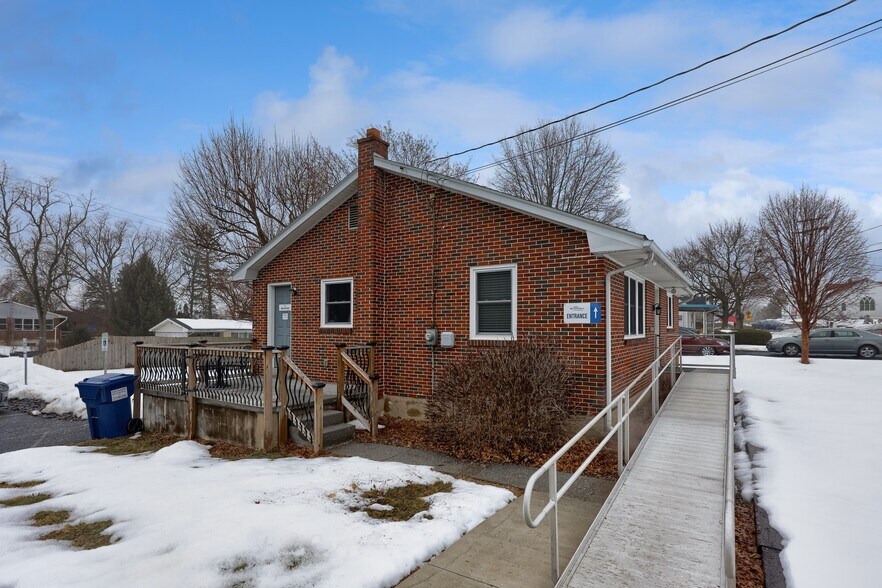 Charming one-story 1,000 SF brick office conversion, thoughtfully improved as a turnkey mental health/therapy practice just off State Route 72 in Lebanon, offering excellent visibility and convenient access. The bright, cheerful interior provides a highly functional layout with a welcoming waiting area, four treatment rooms, a kitchen/break room, and a powder room, all in very good, well-maintained condition. Building systems have been updated, including vinyl replacement windows, modern wiring with 100-amp service, and PEX/PVC plumbing, plus a full basement with poured concrete floor and walk-out access. Property features an ADA ramp to the front door and off-street parking for approximately nine vehicles. The calm, professional setting paired with strong access makes this property ideal for counseling, therapy, and other professional office uses.