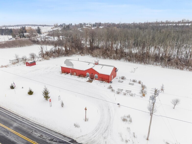 Exceptional opportunity to acquire a fully built, turn-key commercial brewery property set on 17.47 acres at 4504 Bussey Rd, home of Red Hawk Brewing LTD. This 12-year-young purpose-built facility was designed for production efficiency, compliance, and an elevated customer experience. The building features 3-phase electrical, a five-tank septic system including a grease trap, public water with on-demand water tank, and a full fire suppression system. Heating is handled by two boilers—one dedicated to radiant floor heat and one servicing the brewing equipment—ensuring year-round operational stability. Brewing operations include a 7-barrel system that can produce 217-gallons per brew. 1,542 sq ft brewing room with two fermenters, two gray tanks, a walk-in keg cooler, along with the Brew Kettle and Bright Tank. The commercial kitchen space supports food service or expansion opportunities. The tasting room, thoughtfully designed to resemble Belgian abbeys, creates a warm and memorable guest experience, including two public restrooms and an expansive outdoor beer garden. The parking lot offers two entrance/exit points ideal for customer flow and events. The building is being sold fully furnished. Any current inventory and kegs is possible to remain with the property if the buyer holds their own liquor license. The Red Hawk Brewing LTD name is trademarked and may be purchased separately if desired. A rare opportunity to step into an established brewery infrastructure with room to grow, rebrand, or expand operations in a scenic and functional setting.