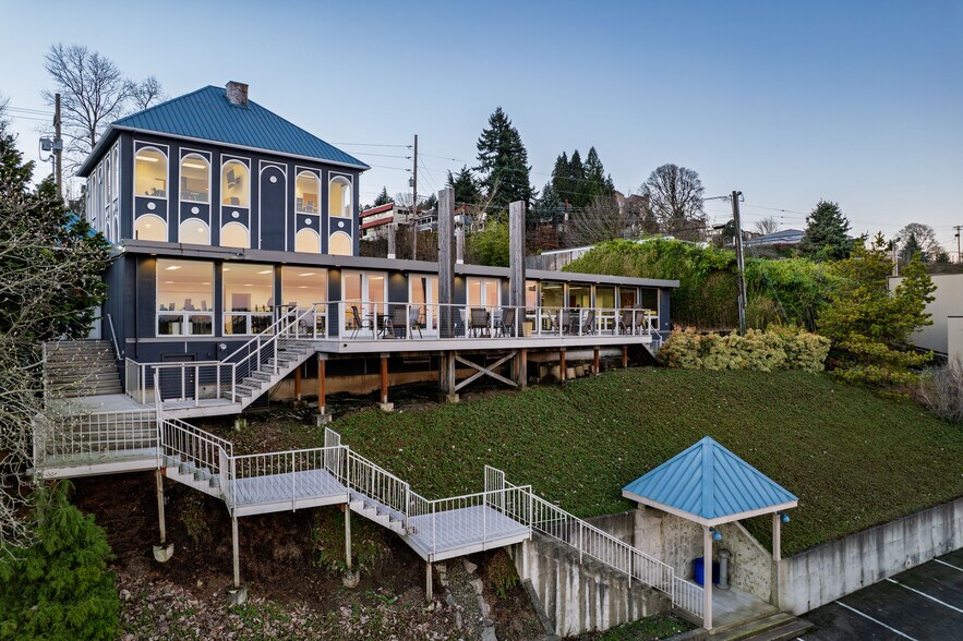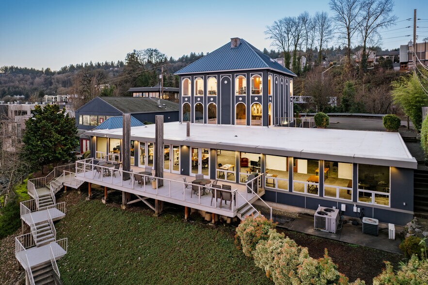 The building features floor-to-ceiling windows, high-end fixtures and finishes, ADA-accessible entry / restrooms, showers, and a large outdoor deck with direct access, creating a compelling setting for both day-to-day operations and client-facing use. Views of Mount Hood and the Willamette River from multiple levels further elevate the workplace experience and brand presence. With up to 21 parking spaces (including ADA) and furniture negotiable, the Property supports a streamlined