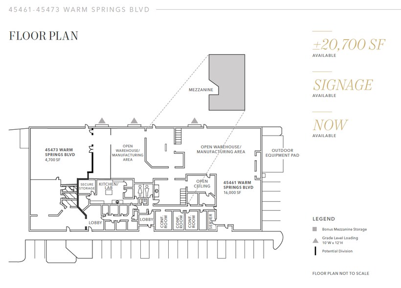 Bâtiments industriels, R&D et manufacturiers à bâtiments multiples situés juste au sud et adjacents à la nouvelle station de métro Warm Springs. Chargement par porte enroulable au niveau du sol, puissance élevée, gicleurs partout, hauteur libre de 13 à 15 pieds.