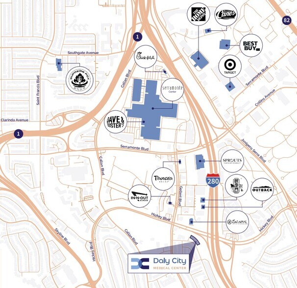 - Proximity to popular retailers, restaurants, service-based businesses, and the Serramonte Center shopping mall.