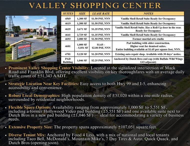 Valley Shopping Center 4551-4701 Mack Rd Local commercial | 93–2 118 m² | À louer | Sacramento, CA 95823