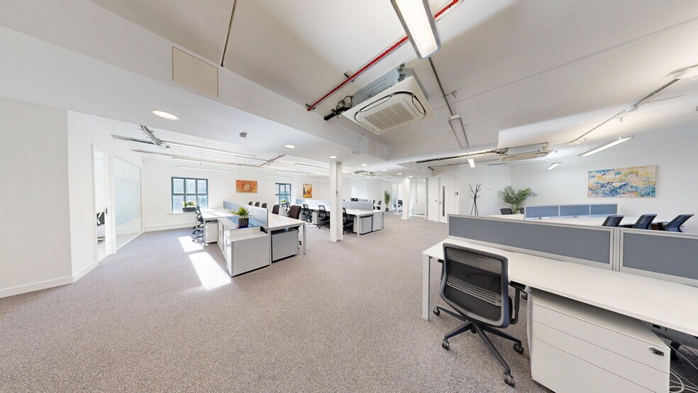 Self-contained office space in a modern development, with an attractive rear communal courtyard. The first floor is currently fitted with 24 desks, which can be removed if needed. Tenants will also benefit from a communal courtyard and a newly refurbished entrance hall. The offices are offered on a new lease for a term by arrangement or for sale on an effective freehold interest. Offers in excess of £1.2m for a sale.
