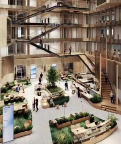L'immeuble Inspire en structure bois s’élèvera sur sept niveaux et proposera 22 300 m² répartis en plateaux de 2 600 m² et offrira à ses occupants 1 400 m² de rooftop végétalisé et 550 m² de terrasses accessibles. La livraison est prévue pour le mois de septembre 2026. Avec sa forme de couronne, Inspire accueillera en son cœur un atrium monumental. En rez-de-chaussée de l’immeuble, mais indépendants de son fonctionnement, un fitness et une brasserie complèteront l’offre de services. En infrastructure, l’immeuble dispose d’une mezzanine et de deux niveaux de sous-sol accueillant une aire de livraison, 235 places de stationnement automobile, un stationnement dédié pour les voitures électriques, 120 places motos et un local de 338 m² pour les vélos. L’immeuble vise une triple certification environnementale : HQE Bâtiments Durables, BREEAM et OSMOZ, une certification axée sur le cadre de vie. En parallèle, deux labels sont également ciblés : le label E+C- avec un niveau E2C1 ainsi que le label BBC Effinergie.