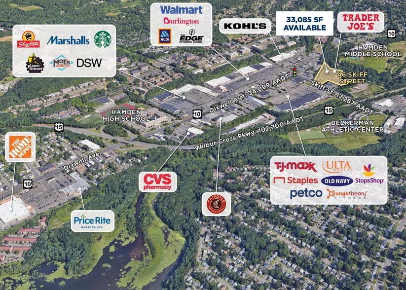 Situé à Hamden, une ville importante du comté de New Haven, dans le Connecticut, cet établissement est une destination idéale pour les résidents et les entreprises. Il est situé dans le principal centre commercial de la région, qui comprend Kohl's, Aldi, Walmart, Staples, etc. L'établissement se trouve juste à côté de l'autoroute nationale 15 sur Skiff Street, au centre du célèbre corridor commercial.