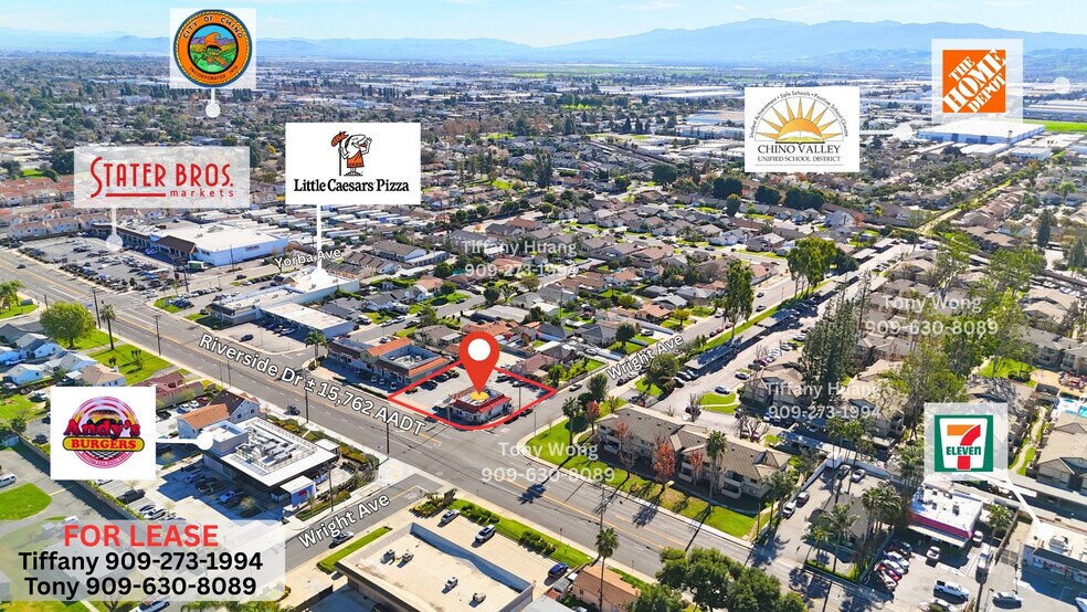 • Free-Standing Restaurant Building • High-Visibility Pylon Signage Available • Strong frontage along Riverside Drive with excellent visibility • Functional restaurant Configuration, suitable for dine-in or take-out • 17 on-site parking spaces plus 1 handicap parking space • Surrounded by Schools, Parks, Residential Neighborhoods, and Businesses • Easy access to CA-60, CA-71 • Strong daytime population and consistent local traffic flow • Ideal for: Boba Tea Shop for lease/ Donut Shop for lease / Coffee for lease/ Bakery for lease / Seafood Restaurant for lease / Chinese Restaurant for lease/ Korean Tofu & BBQ for lease / Vietnamese Restaurant for lease/ Pho for lease/ Dim Sum Restaurant for lease / Dessert for lease Call/Text for Details: Tony: 909-630-8089 Tiffany: 909-273-1994
