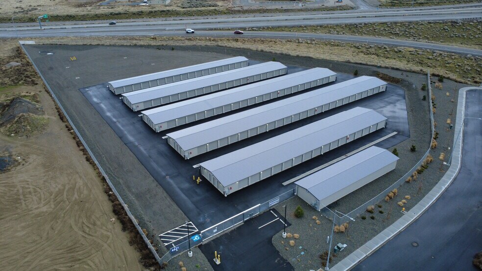 The property is fully fenced, equipped with security cameras, and offers keypad-controlled gate access. Ideally situated with frontage near the interchange of Highway 395 and I-82, the site provides outstanding visibility and convenient access from all directions.